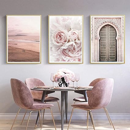 Maroc Porte Scandinave Rose Surf Beach Toile Peinture Affiche Fleur Art Imprimer Decoration Mur Photos Pour Salon Decoration Murale 50x70 Cm X 3 Sans Cadre Amazon Fr Cuisine Maison