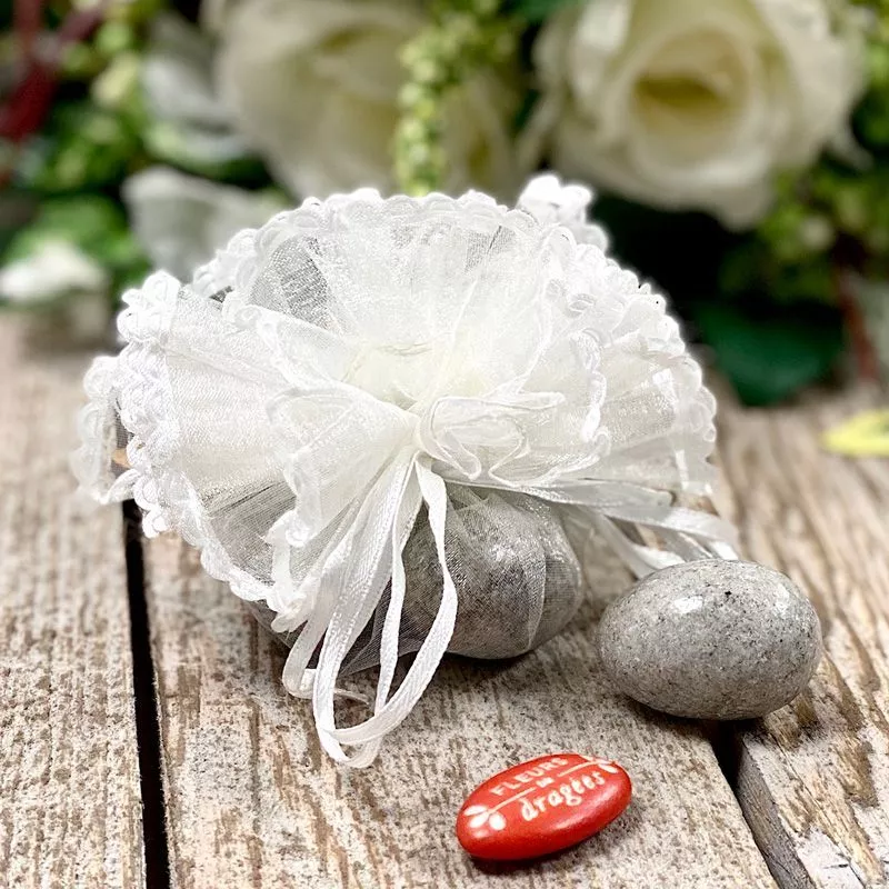 Tulle Dragees Organza De Soie Ivoire Avec Tiret 10pcs