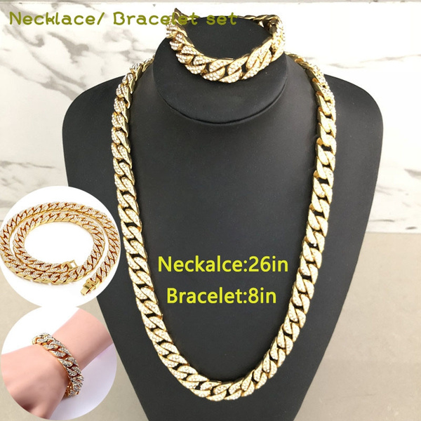 Hip Hop Men Punk Jewelry Set Curb Chain 14mm Wide Silver Gold 26 Inch Necklace 8 Inch Bracelet Collier De Bracelet Pour Hommes Wish