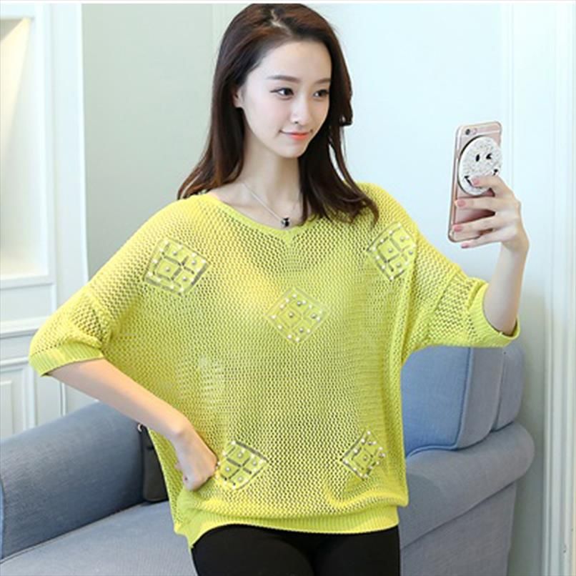 Summer Knitted Women Pull Femme Mesh Tricot 19 Fashion Sweater Tops Knitwear Yellow Loose Knitwear Jumper New Arrival From Yuhui001 17 95 Dhgate Com