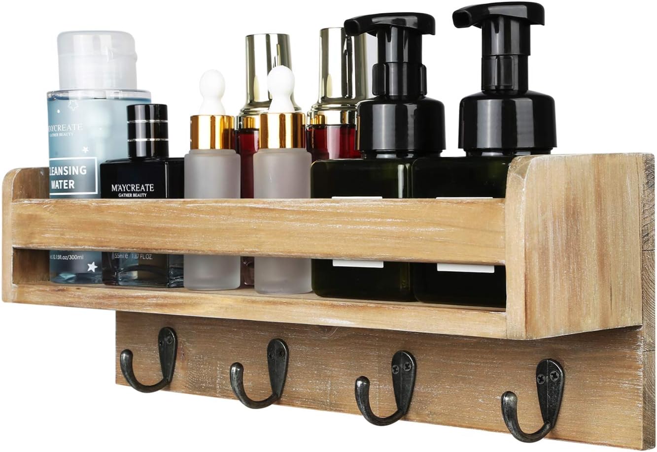 Vencipo Etagere Murale Bois Pour Rangement Salle De Bains Avec Porte Serviette Decoration Murale Au Salon Chambre Ou Bureau Etagere Murale Pour Rangement Cuisine Avec 8 Crochets Amovibles Rangement Et Organisation Cuisine