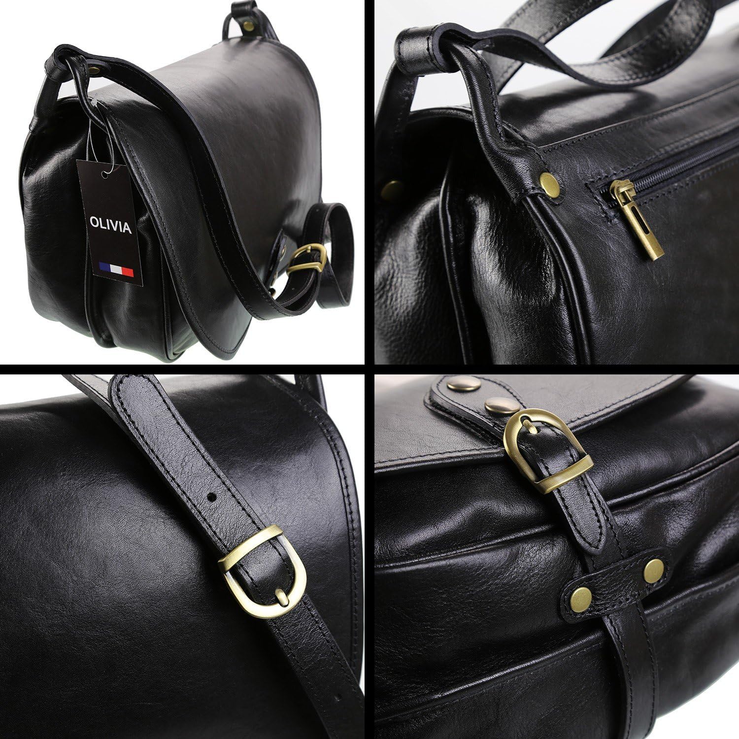 Noir Sac Bandouliere Femme Cuir Lisse Modele Florence 30 X 24 Cm Olivia Cuir Sacs Portes Main Bagages