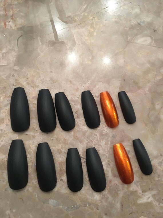 Black Matte Orange Long Coffin Ballerina False Nails Coffin Etsy