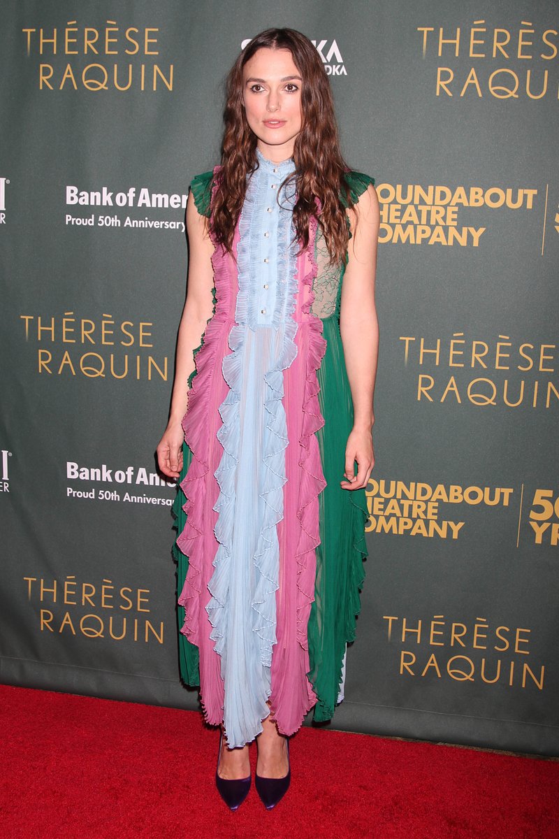 Fashion Geek Keira Knightley Wearing A Gucci Resort 16 Ruffled Dress To The Opening Night Of Thereseraquin Last Night In Nyc T Co L5ai3m7wio