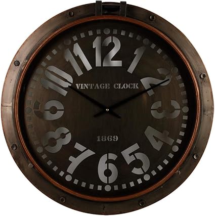 Grande Et Magnifique Pendule Horloge Murale De Tres Belle Qualite Forme Hublot Coloris Marron Vieilli Amazon Fr Cuisine Maison