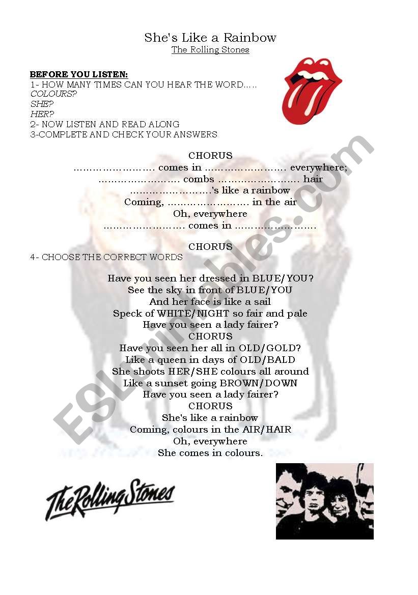 She S Like A Rainbow The Rolling Stones Esl Worksheet By Gabybro