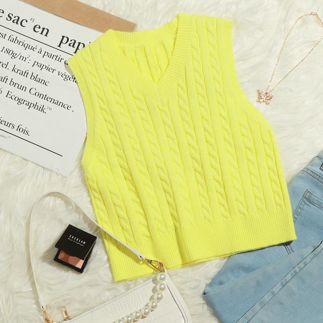Pull Sans Manches Fluo En Tricot Torsade From Shein On 21 Buttons