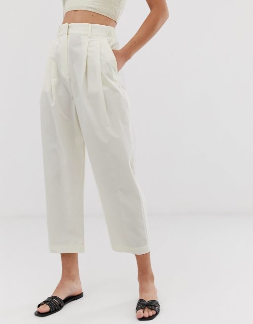 Mango Pantalon Large A Taille Elastique Blanc Asos