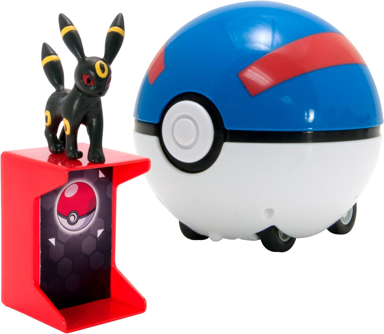 Amazon Com Tomy Pokemon Catch N Return Pokeball Umbreon Action Figure And Great Ball Toys Games