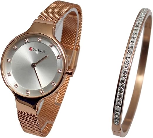 Montre Femme Gold Or Rose Crystalline Maille Milanaise Bracelet Jonc Amazon Fr Montres