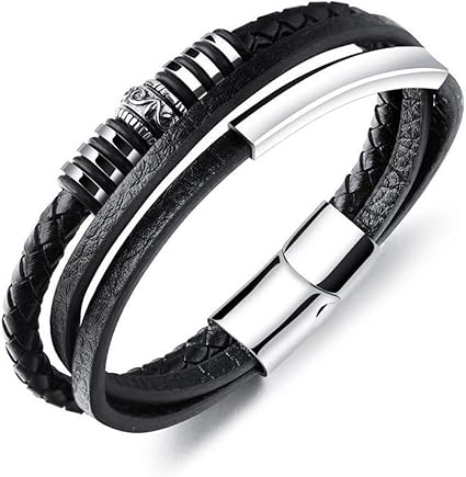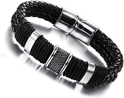 Shouaqi Bracelet Homme Cuir Bijoux Pour Hommes Bracelet En Cuir Tresse Noir Bracelet Fait Main Acier Inoxydable Fermoirs Magnetiques Poignet Amazon Fr Cuisine Maison