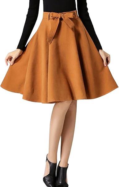 Dressvip Femme Forme Trapeze Jupe Patineuse Longueur Genou Courte Couleur Unie Avec Ceinture Automne Hiver L Kaki Amazon Fr Vetements Et Accessoires