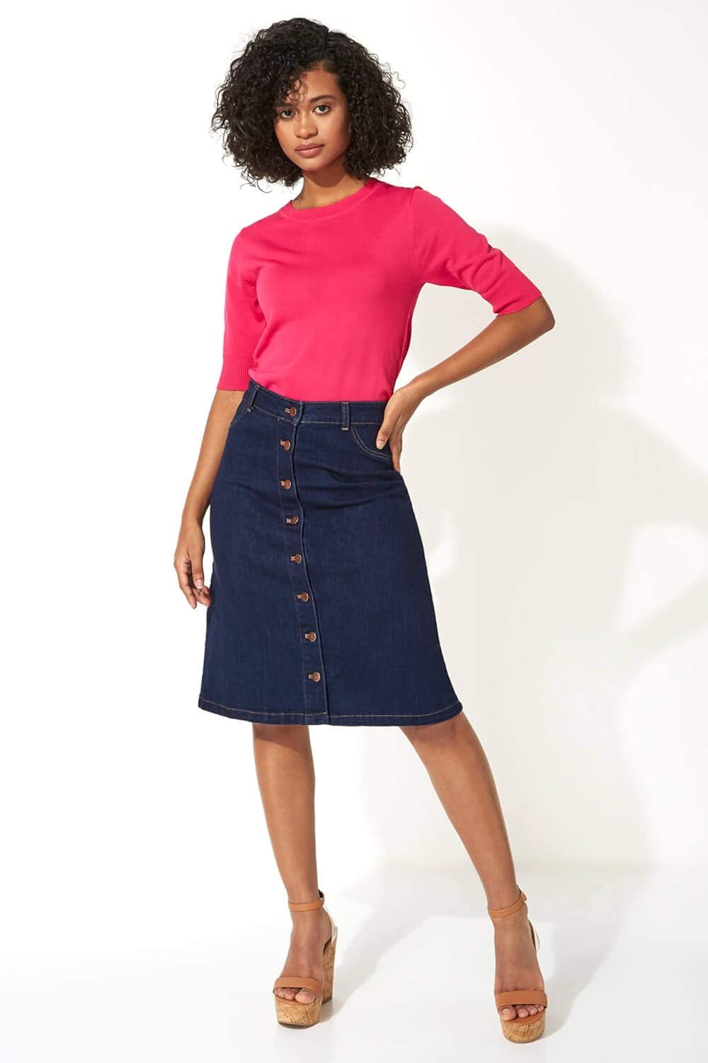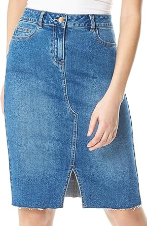 Roman Originals Femmes Jupe En Jean Boutonnee Jupes Trapeze Longueur Genou 98 Coton Stretch Style Tendance Et Sexy Pour La Fac Ou Le Bureau En Journee Ou En Soiree Amazon Fr Vetements