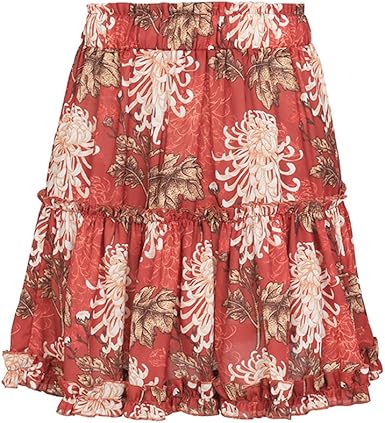 Jilongshi Jupes Femmes Ete Jupe Boho Jupe Trapeze Jupe Femme Taille Elastiquee Jupe A Fleurs Boheme Jupe Au Genou Jupe Femme Chic Jupe Court Jupe Vintage Jupe De Plage Elegant Mode Rouge