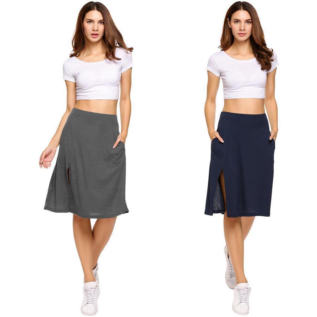 Femmes Taille Haute Split Avant Genou Jupe Trapeze Solide Casual Slim Faire Des Achats En Ligne A Bas Prix Sur Joom