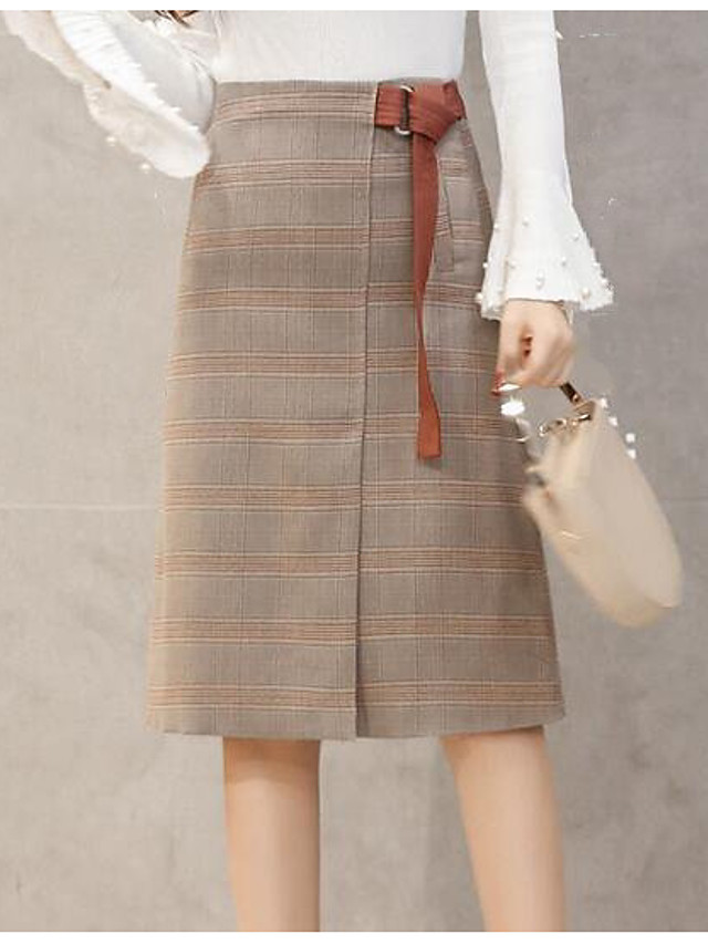 De Laine Plaid Longueur Au Genou Jupes Trapeze Jupes Veryvoga