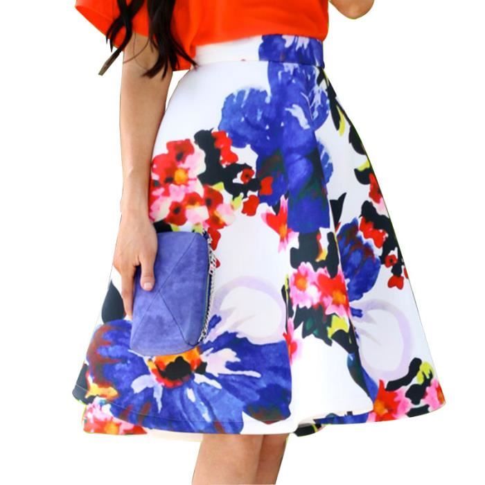 Jupe Trapeze Retro Vintage Au Genou Taille Haute Fourreau Imprime Floral Bleu Jupe Plisse Swing Blanc Achat Vente Jupe Cdiscount