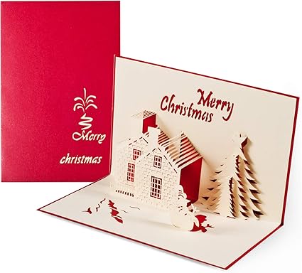 Anewish Cartes De Noel 3d Pop Up Carte De Voeux Maison De Neige Sapin De Noel Cartes Pliees Avec Enveloppe Amazon Fr Fournitures De Bureau