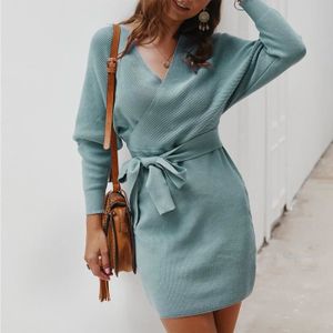 Women Fashion Winter Outwear Long Sweater Dress Full Sleeves Cute Elegant Knitted Vestidos Streetwear Robe Pull Femme Clothes Wish