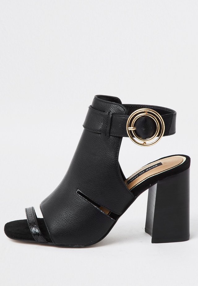 Missguided Sandales Montantes A Talons Noires Avec Details Dores Sandale Montante Talons Noirs Sandales