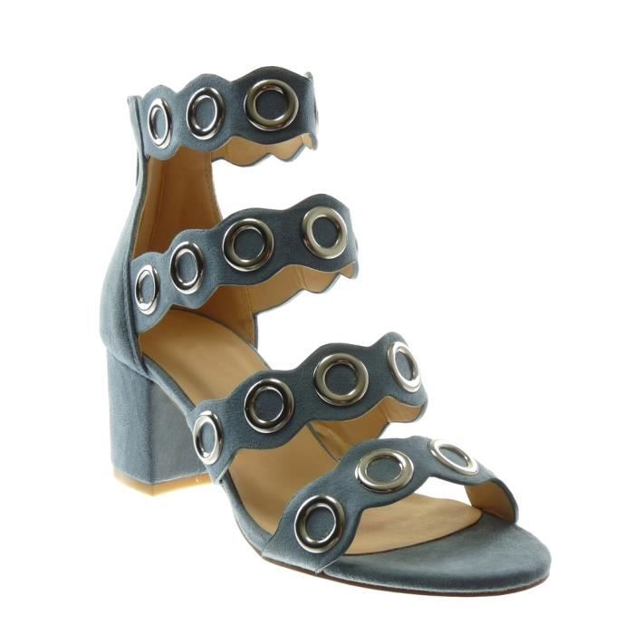 Angkorly Chaussure Mode Sandale Montante Femme Multi Bride Perforee Talon Haut Bloc 6 Cm Bleu Sk1128 T 35 Bleu Achat Vente Sandale Nu Pieds Cdiscount