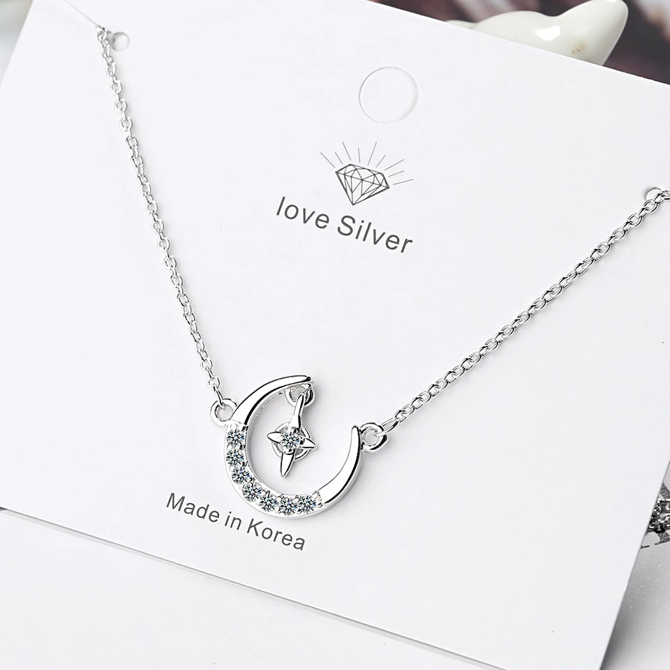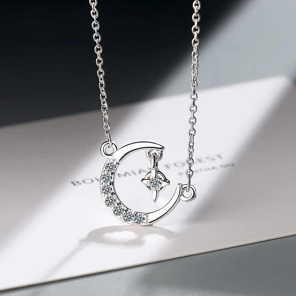 925 Argent Sterling Croissant De Lune Et Zircone Etoile Colliers Pendentifs Pour Femmes Accessoires Bijoux Argent Chaine Collier Aliexpress