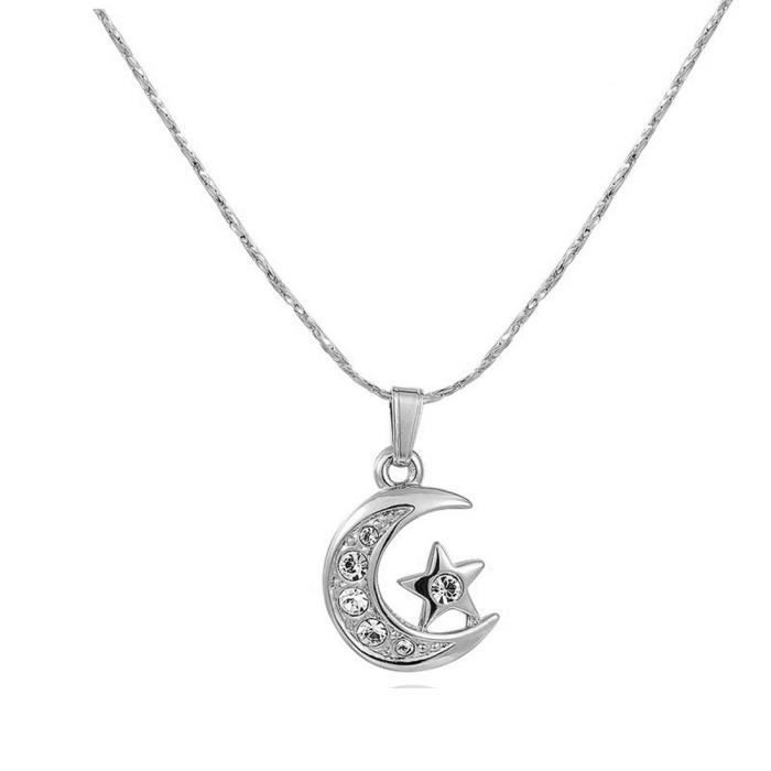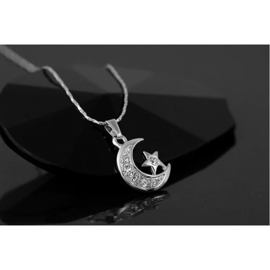 Lune Multi Pierre Cz Lune Et Etoile Collier Pendentif En Or Blanc Plate 17 7 Achat Vente Sautoir Et Collier Lune Multi Pierre Cz Lune E Or Blanc Argente Soldes Sur