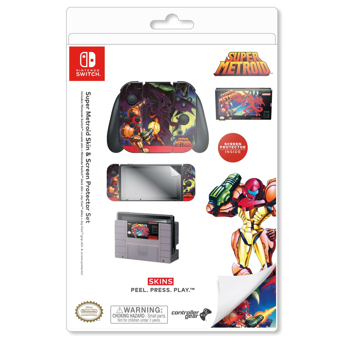 Amazon Com Controller Gear Officially Licensed Nintendo Switch Skin Screen Protector Set Super Metroid Nintendo Switch Video Games