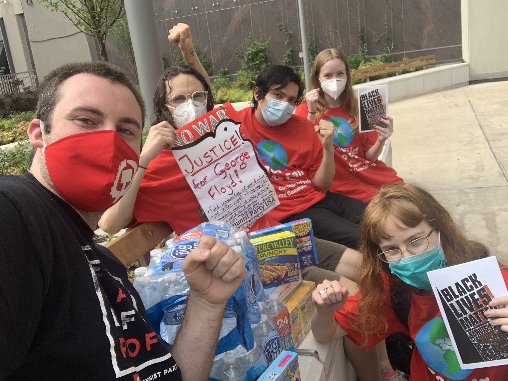 Communist Party Usa Members Of The Young Communist League Organizing Committee In New York City Wait In Police Plaza With Water Food Hand Sanitizer And Masks For Detained Protesters To