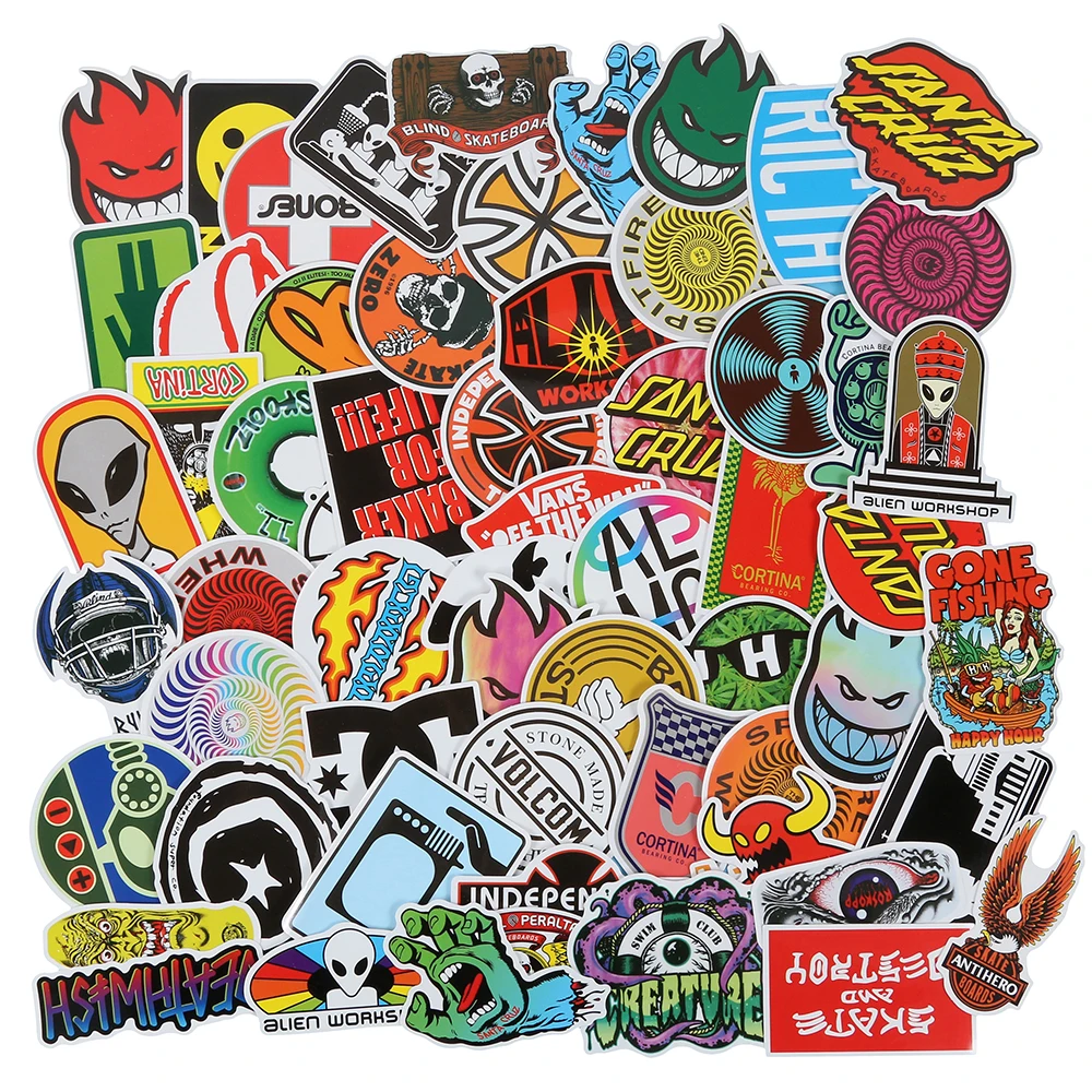 100 Pieces Skateboard Mode Marque Logo Autocollant Etanche Pour Bagages Voiture Guaitar Skateboard Telephone Portable Autocollants De Velo Aliexpress