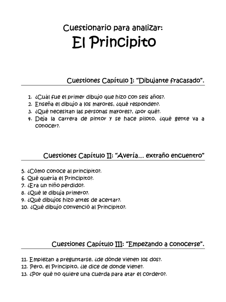 Cuestionario Para Analizar El Principito Pdf El Principito Naturaleza