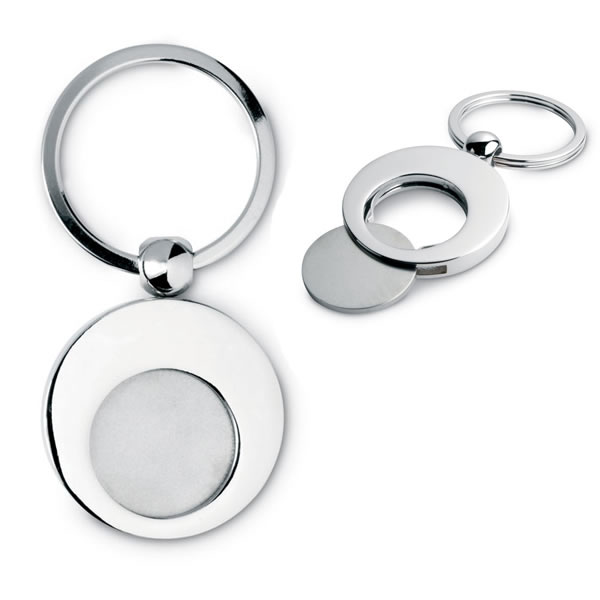 Logo En Porte Cles Metal Argente Avec Jeton De Caddie Customise Amalgame Imprimeur Graveur