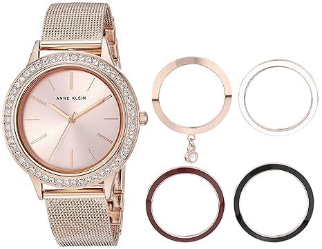 Buy Anne Klein Women S Rose Gold Tone Mesh Bracelet Watch And Interchangeable Bezel Set Online At Low Prices In India Amazon In