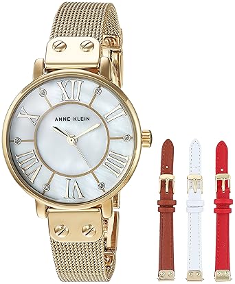 Buy Anne Klein Women S Ak 3180gbst Gold Tone Mesh Bracelet Watch And Interchangeable Strap Set Online At Low Prices In India Amazon In
