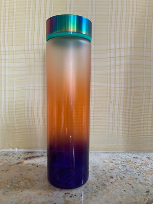 New Starbucks Ombre Purple Orange Glass Water Bottle Iridescent Screw Top 16oz Ebay