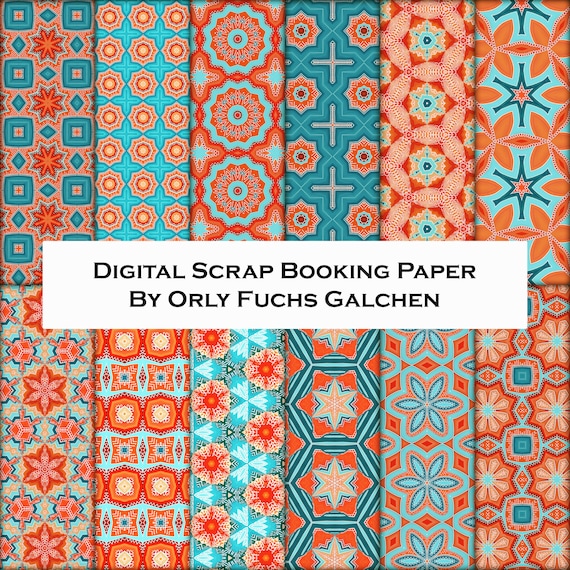 Turquoise Bleu Canard Et Orange Ensemble Papier Scrapbook Etsy