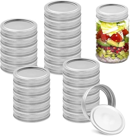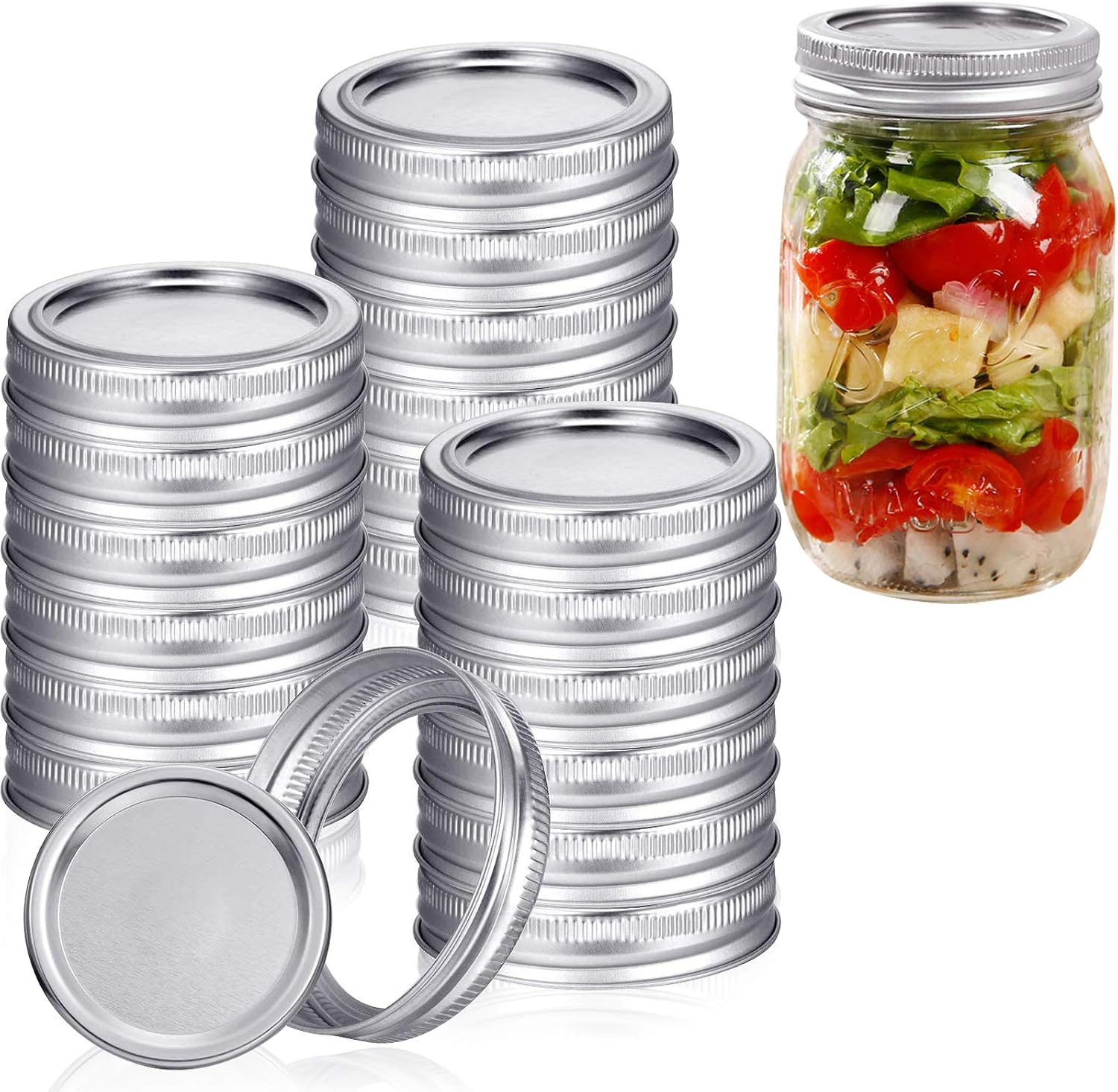 Owoda 24pcs 70mm Ensembles Pot De Conserve Mason Couvercle De Rechange De Pot Et Bande Anti Fuite Et Couvercle De Bocaux Mason Securise Pour Conserve Congelation Fermentation Decoration Decapage Conserves Et Confitures Cuisine