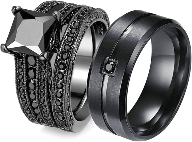 Aeici Bague De Mariage Femme Homme Bague De Fiancailles Femme Plaque Or Zircon Cubique En Forme De Princesse Noire Alliance Noir Femme 49 Homme 56 5 Amazon Fr Bijoux