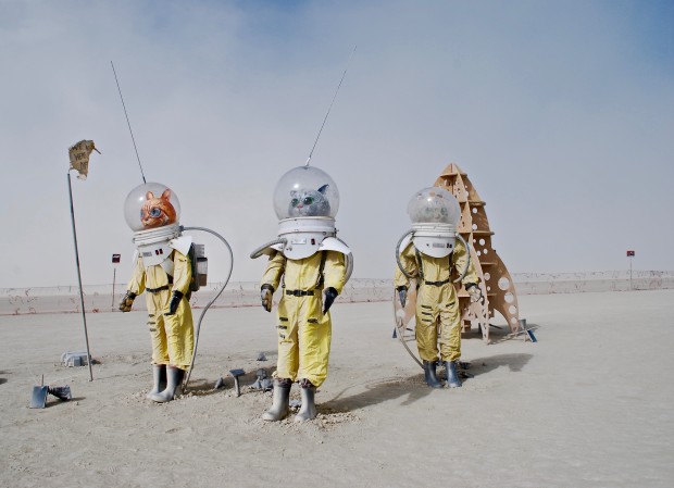 Art Installation For Burning Man Spacecats 2 0 A Whimsical Tableau Of A Catstronaut Landing That Is Also A Memorial To Our Departed Furry Friends