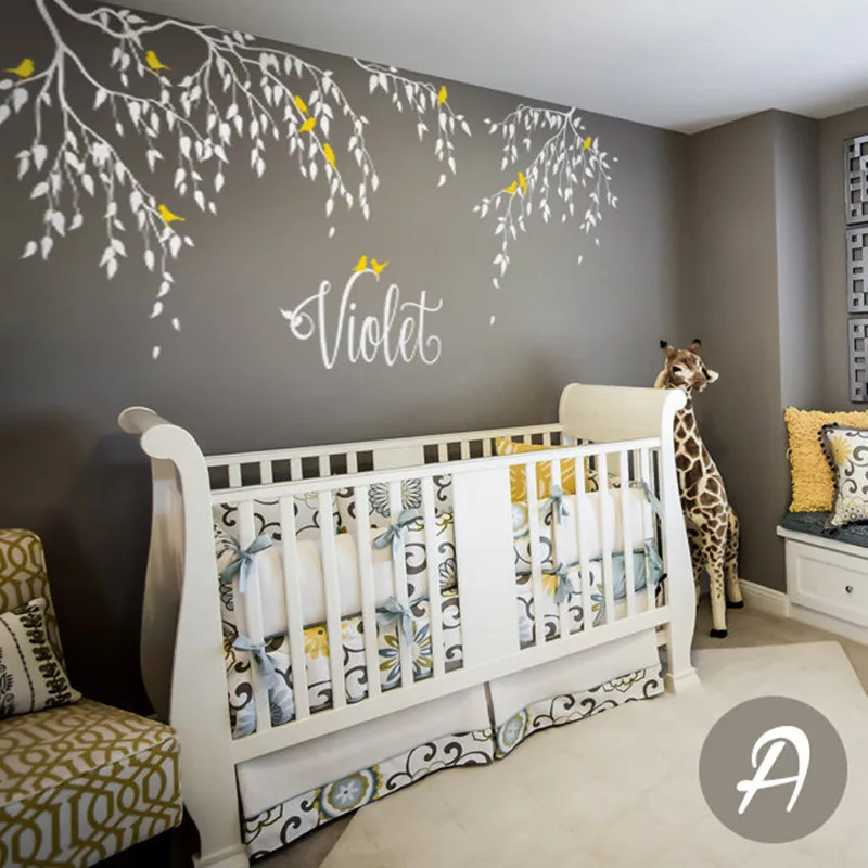 Branches Stickers Muraux Oiseaux Avec Nom Personnalise Arbre Vinyle Autocollant Mural Maison Enfants Chambre Decor Chute Feuilles Creatif Mural D 305 Aliexpress