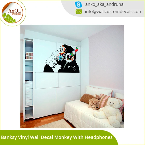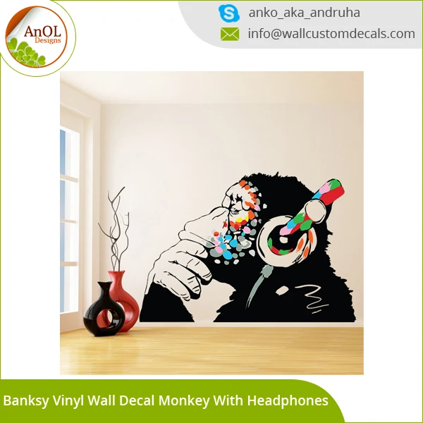 Personnalise Amovible Enfants Maison Decor Salle De Bain Vinyle Sticker Mural Buy Vinyl Wall Decal Monkey With Headphones Wall Decal Street Art Graffiti Sticker Product On Alibaba Com