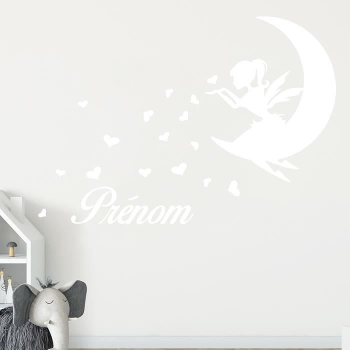 Stickers Muraux Deco Chambre Enfant Stickers Prenom Personnalise Fee Sur La Lune Blanc 450x310 Mm Achat Vente Stickers Soldes Sur Cdiscount Des Le Janvier Cdiscount