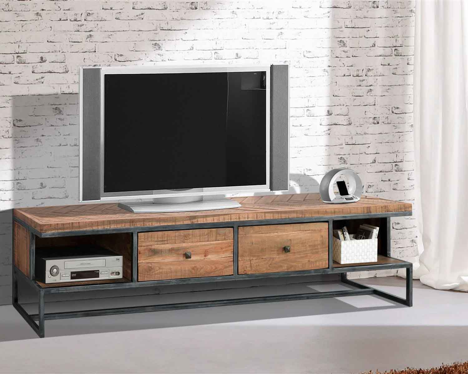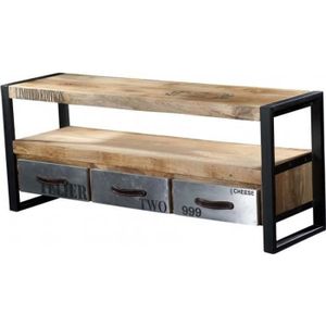 Meuble Tele Industriel Bois Massif Et Metal Lincoln 2526