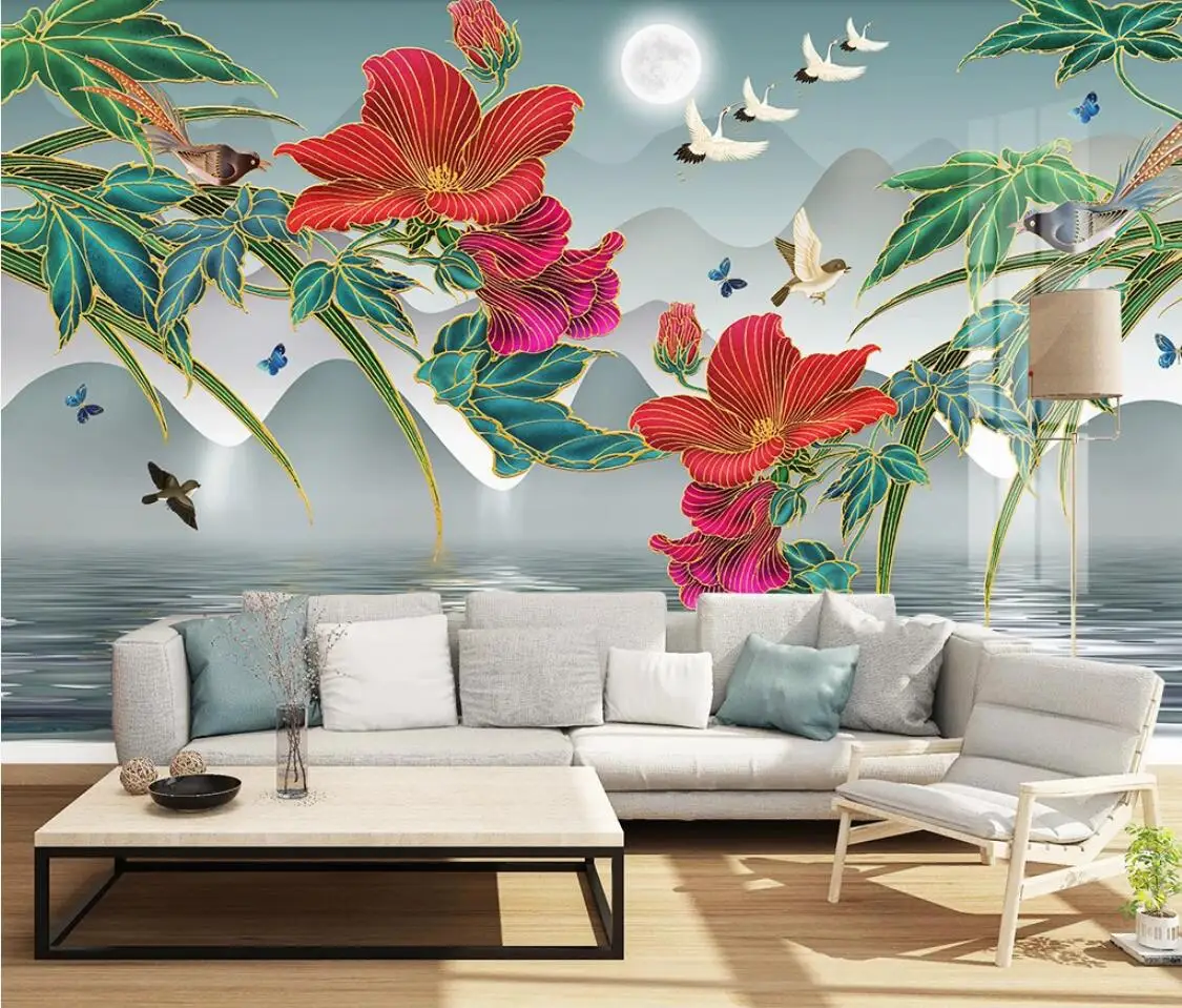 Flower Crane Wallpaper Butterfly Wall Mural Papier Peint Mural 3d Novelty Art Paint Murales Chinese Style Creative Floral Papers Wallpapers Aliexpress