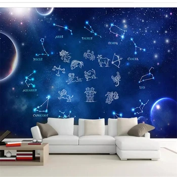 Wellyu Custom Wallpaper Colorful Starry Twelve Constellation Children Room Background Wall Papier Peint Mural 3d Behang Leather Bag