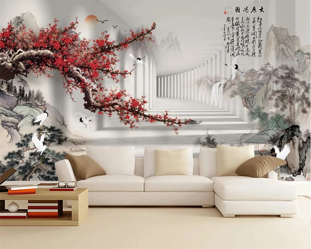 Papier Peint Mural 3d 3d Chinese Style Plum Blossom Wallpaper Tv Background Wall Decoration Painting Wall Papers Home Decor Wallpapers Aliexpress