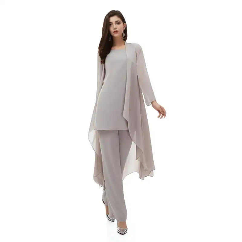 Costume 3 Pieces En Mousseline De Soie Pour Femmes Robe Pour Mere De Mariee Costume Pantalon A Manches Longues Avec Veste Tenue Pour Le Marie De Mariage Aliexpress