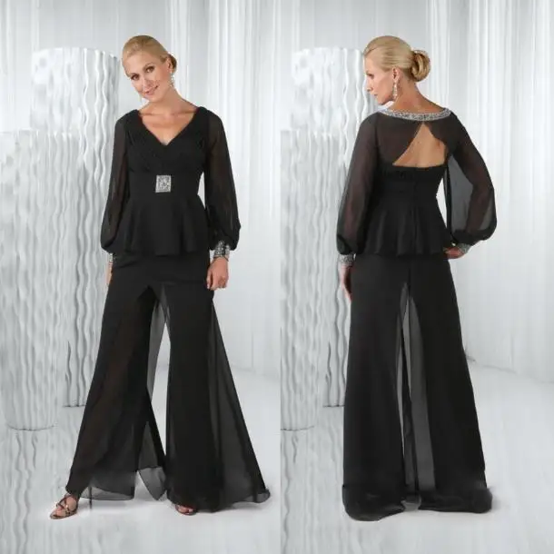 Acheter Mere Gris Fonce Des Robes De Mariee Pantalons Costumes En Mousseline De Soie Pantalon A Manches Longues Plus La Taille Des Meres Marie Robe De Soiree En Tenue De Soiree De