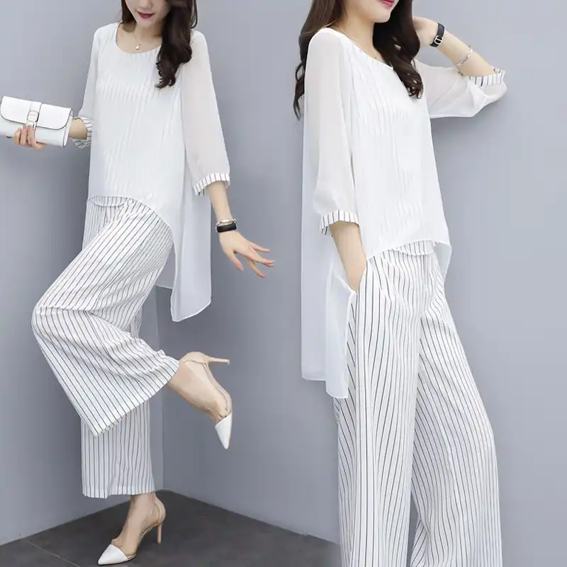 Costume Pantalon En Mousseline De Soie Pour Femmes Tenue Pour Mere De Mariee Tenue De Soiree Pour Invites De Mariage A Rayures Jambes Larges Ample Ensemble De 3 Pieces 19 Aliexpress