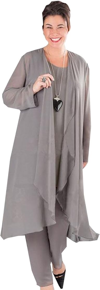 Dressvip 3 Tenues De Mere De Mariee En Mousseline De Soie Avec Pantalon Col Rond Sans Manches Gris Gris 14w Uk Amazon Fr Vetements Et Accessoires
